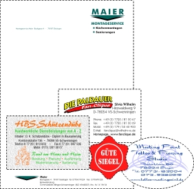 Einladungen usw. schnell, selbstverständlich im Farbdruck, herzustellen. Die preisgünstige Alternative zum Offsetdruck. In Kombination mit dem Schneideplotter fertigen wir Etiketten in fast jeder beliebigen Form. Egal ob für Gewerbe oder privat. |